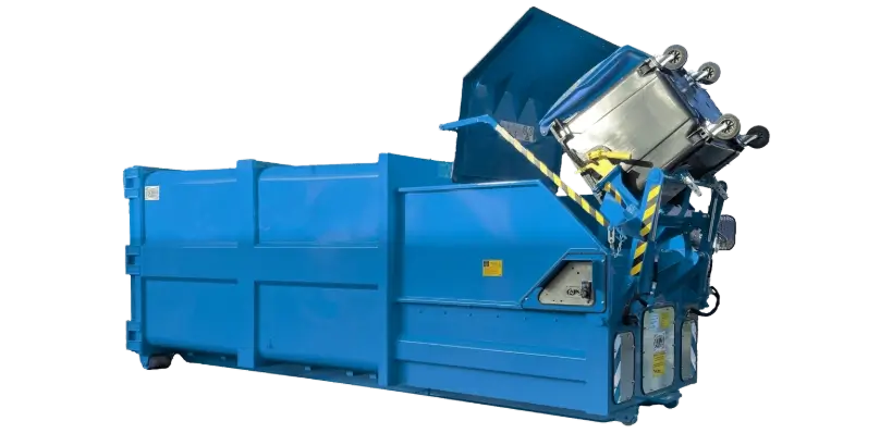 Pakt de rolcontainers op en leegt ze in de perscontainer. Plaats meerdere rolcontainers op uw terrein en leeg deze vervolgens in de perscontainer.